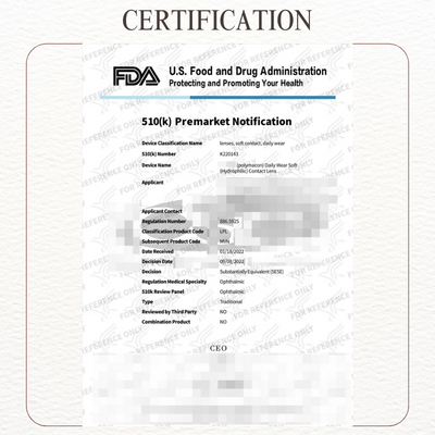 All our colored contact lenses are manufactured under the control of a certified Quality Management System, in compliance with FDA regulations.